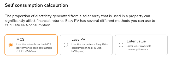 This page can only generate with the Easy PV or MCS self-consumption method selected in the financial task.