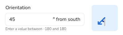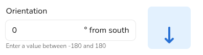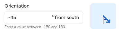 For Quick Roof projects, you have to directly set the orientation rather than it being calculated based on the satellite map. This is done in degrees from south, going clockwise.