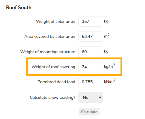Weight loading calculations will often fail for plain tile roofs. This is because we use MCS default values for the tile weight, and the value for plain tiles is much higher than other roof coverings. If you are finding your calculations are failing when you don't expect them to, you can get a tile from the exact roof and measure the kg/m2 to replace this value: