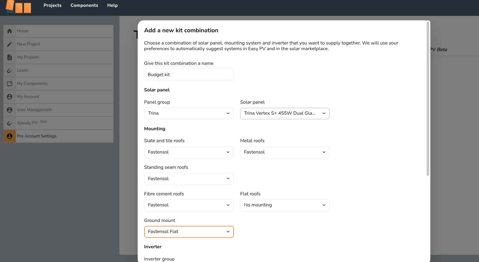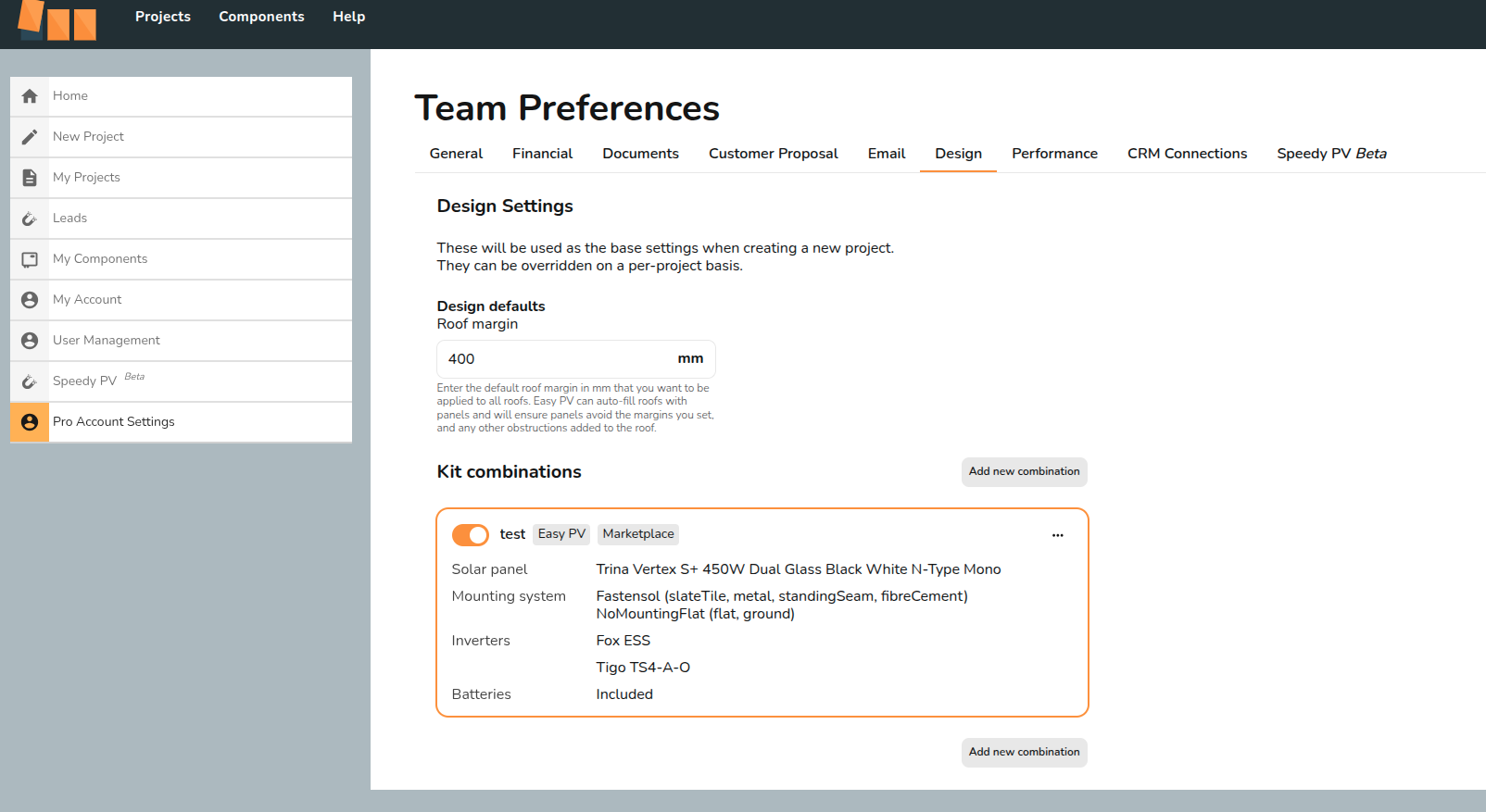 To set up the kit combinations you would like to show on the marketplace, you need to go to your Pro Account Settings > Design > Kit Combinations