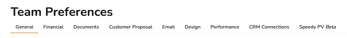 Correctly setting up your team preferences can help you make the most of Easy PV Pro. Navigate to Pro account settings and click through each tab to set this up. Find further information in each section below.