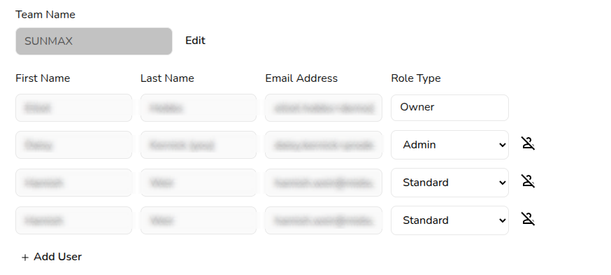 - Add team members and set their role type