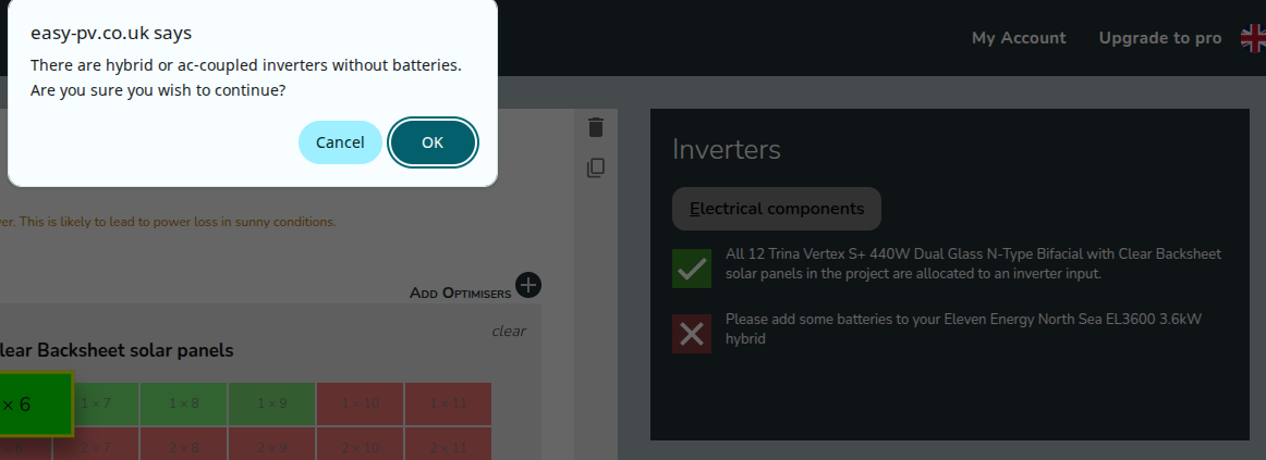 You can skip adding a battery to a hybrid inverter if the plan is to install one at a later date. A warning will appear when going to the Electrical task but this can be bypassed.