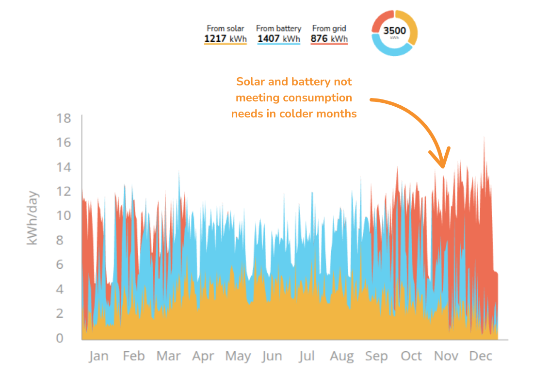 - This shows the likely flow of energy to and from the grid over the course of a year.