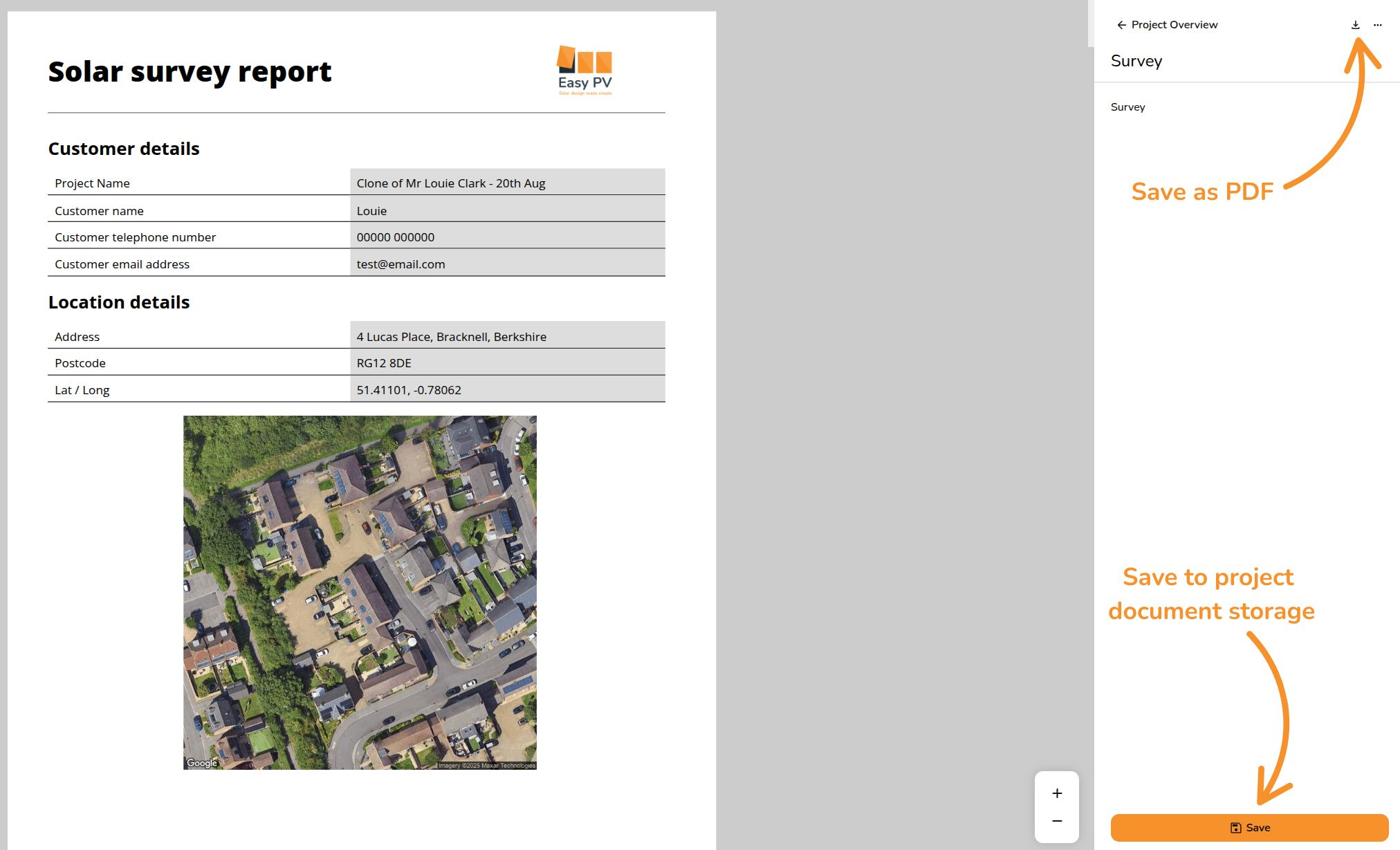 You can then scroll through the document with all your inputs, save as a PDF or save to your project's document storage